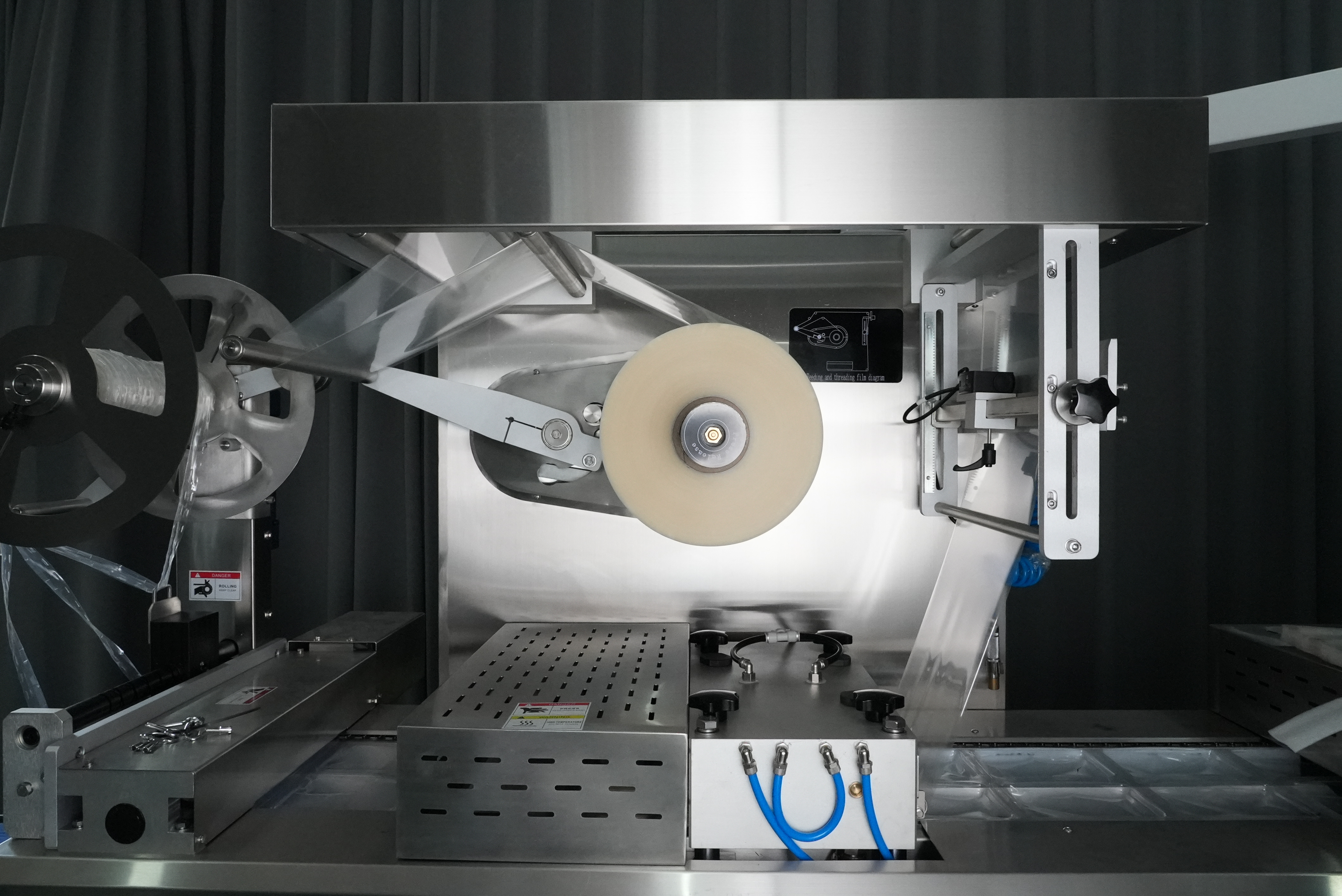 قابل تنظیم دستگاه بسته بندی ترموفرمین خودکار-چاپ برچسب زدن اختیاری ، سبک های آب بندی متقاطع (پارگی/مسطح/آسان) و دستگاه تغذیه اتوماتیک.
